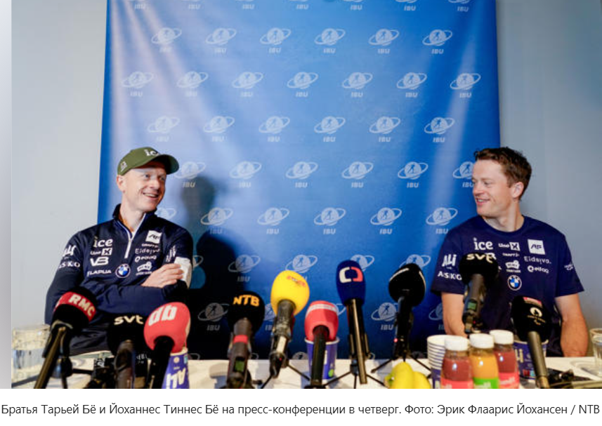 Братья встретились с прессой перед началом этапа в Холменколене в четверг. Я с нетерпением ждал этого дня здесь. Спасибо всем, кто пришел, и мы готовы к большому наплыву людей на все выходные, - сказал Йоха́ннес Бё В январе именно он, младший Йоха́ннес Ти́ннес Бё в народе просто "рыжий" объявил что уходит из большого спорта. Так и сказал : надоело !, денег мульоны, хочу мол, пожить для себя и детей, пока молод хочу посвящать больше времени семье. К Рождеству он подошел не в самой лучшей кондиции, но после объявления об "отставке" воспрял духом и решил закончить карьеру на высокой ноте. Многие в других странах удивились такому решению, но не в Норвегии. Он уже не раз намекал что выгорает, да и такое решение норвежцы понимают чисто по человечески позитивно. Старший братишка Тарья Бё, который когда то был ориентиром для младшего брата, тоже последовал его примеру. Они решили завершить карьеру на этапе Кубка мира в Норвегии, а именно в Холменколене. И вот перед выходными они отвечали на