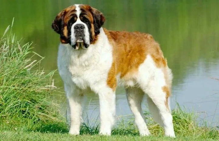 Сенбернар — порода собак из группы молоссов. Различают две разновидности: короткошёрстную и длинношёрстную. Происхождение: порода выведена в монастыре Святого Бернарда в Швейцарских Альпах. Название «сенбернар» (фр. Chien du Saint-Bernard — собака святого Бернара) произошло от монастыря. Описание: Рост: кобели — 70–90 см, суки — 65–80 см. Голова: крупная и широкая, лоб выпуклый, слегка покрытый морщинами, переход ото лба к морде явно выражен. Губы: верхние отвисают. Зубы: крепкие, полный комплект. Глаза: тёмно-коричневые, не очень большие, немного впалые, расположенные достаточно близко к переносице. Уши: средней величины, свисают по бокам головы. Шея: сильная, с большим воротником. Шерсть: средней длины, блестящая, имеется густой подшёрсток. Окрас: рыжий с белыми отметинами или белый с рыжими отметинами, причём оттенок рыжего допускается любой. Характер: сенбернары — преданные и очень послушные собаки, любят людей, а с детьми обращаются очень бережно и аккуратно. Ис
