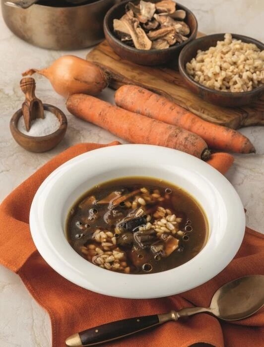 Здравствуйте, друзья! Сегодня на обед предлагаю приготовить простой, полезный и быстрый грибной суп с перловкой. 🥣 А прежде, чем мы приступим к рецепту, давайте немного поговорим про саму перловку, её пользу и противопоказания, в том числе и при сахарном диабете. Перловка (перловая крупа) — это обработанные зерна ячменя, которые обладают множеством полезных свойств. Вот основные преимущества её включения в рацион: 1. Богата питательными веществами. Клетчатка улучшает пищеварение, предотвращает запоры и поддерживает здоровую микрофлору кишечника. Витамины группы В (B1, B2, B3, B6): укрепляют нервную систему, участвуют в энергетическом обмене. Минералы: -Селен — антиоксидант, защищает клетки от повреждений. -Железо — важно для кроветворения. - Фосфор и кальций— укрепляют кости и зубы. - Цинк — поддерживает иммунитет и регенерацию тканей. 2. Снижает уровень холестерина. Растворимая клетчатка (бета-глюкан) в перловке связывает холестерин в кишечнике, способствуя его выведению. 3. Ко