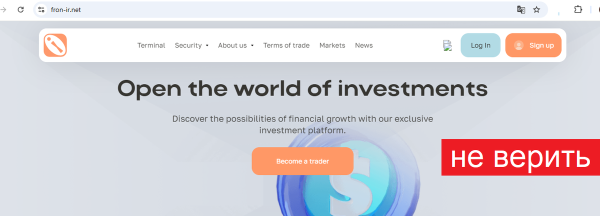 Вот пример одного из них: "После нескольких успешных сделок аналитик начал настойчиво предлагать увеличить депозит для получения большего дохода. Когда я решил вывести средства, мне сообщили о необходимости оплаты налогов и комиссий. После оплаты связь с брокером пропала, а деньги так и не вернулись." Подобные истории, к сожалению, не редкость среди клиентов этого брокера. Мошеннические схемы, использующиеся брокером, включают несколько этапов: Такие действия явно указывают на мошеннический характер деятельности компании. При проверке домена Fron-ir.net выясняется, что сайт был зарегистрирован совсем недавно. Отсутствие истории и репутации вызывает серьёзные сомн