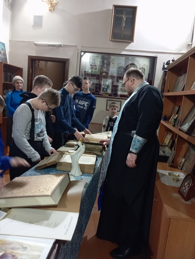 16 марта 2025 года в храме Святой Троицы г. Осинники состоялся праздник, посвященный Дню православной книги. День православной книги отмечается в России 14 марта, он учрежден Русской Православной Церковью в память о выходе 14 марта 1564 года первой печатной книги «Апостол», созданной первопечатником Иваном Федоровым. Учащиеся Воскресной школы храма Святой Троицы и православные следопыты отряда им. прмч. Льва (Егорова) при храме преп. Сергия Радонежского г. Осинники посетили выставку «Листая вечные страницы» в церковном музее «Земля, где ходили святые». Помощник благочинного Осинниковского округа по образованию протоиерей Александр Ковезюк рассказал ребятам об истории создания печатных книг, о жизни и трудах русского первопечатника диакона Ивана Федорова. Отец Александр подчеркнул, что к книгам на Руси всегда было особое отношение, русская история и культура неразрывно связаны с книжностью. Батюшка подчеркнул, что книги бывают разные, поэтому главная задача, которая стоит перед читателе