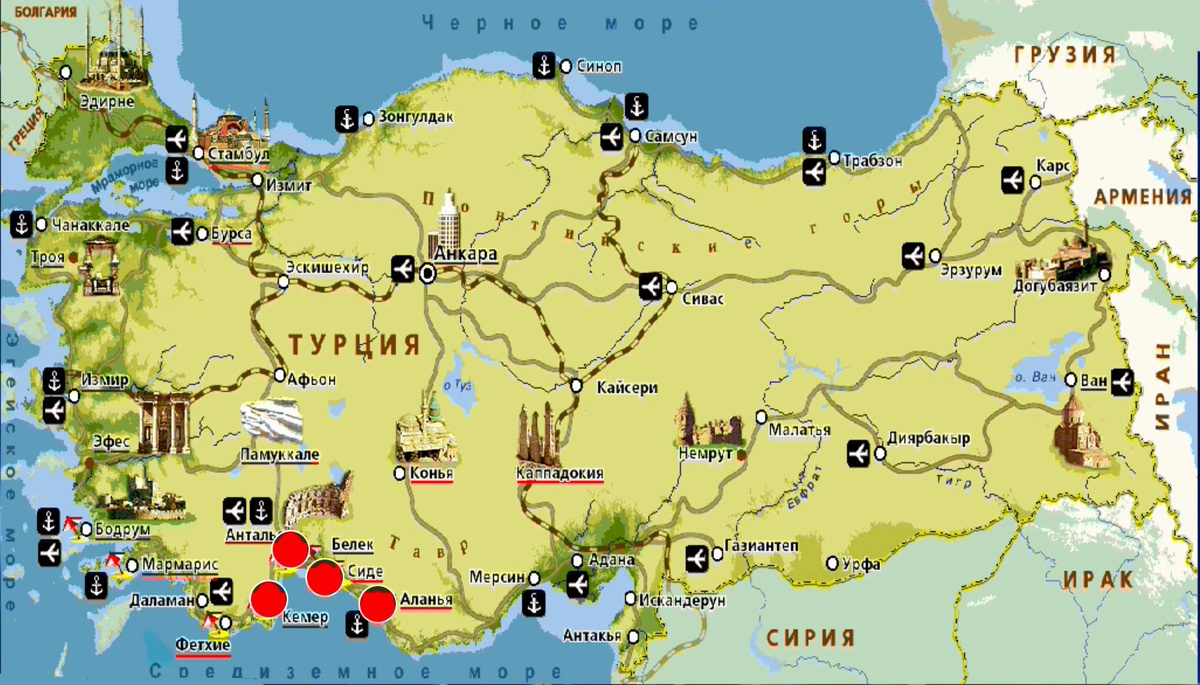 Население Турции составляет более 85 млн человек. Наиболее крупными городами с населением свыше 1 миллиона человек являются: Стамбул (Константинополь), Анкара, Измир (Смирна); Бурса, Адана, Конья, Анталья, Антакья (Антиохия), Газиантеп (Антеп), ШанлыУрфа (Эдесса), Самсун.