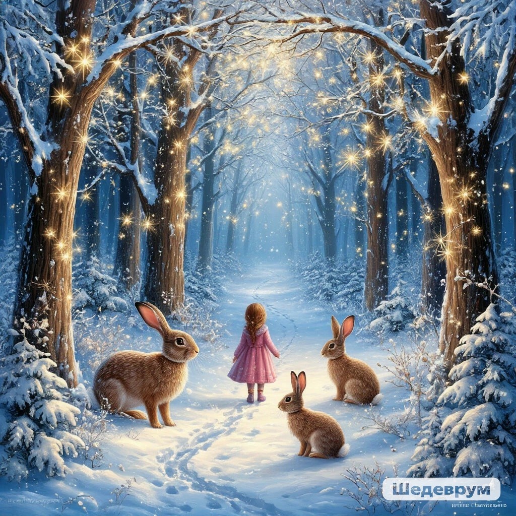 - Сейчас мы попадем с тобой в сказочный лес! - запрыгал заяц. Он начал копать у корней дерева снег, быстро перебирая лапками.