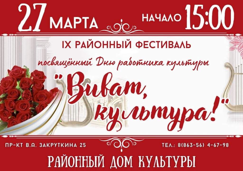 Работники культуры к своему профессиональному празднику подготовили концерт, на который приглашают жителей и гостей района. Зрителей ждут в Семикаракорском РДК 27 марта к 15:00.