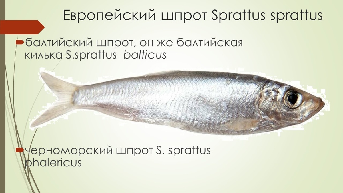 Само слово «шпроты» — искаженное латинское название европейского шпрота, это один из пяти видов рыб, входящих в вид шпроты (Sprattus), все они обитают в Южном полушарии, а вот этот — в северном, но не только в холодном Балтийском море, но и в более теплом Черном. А почему? Потому что у европейского шпрота есть 2 подвида. Таким образом, и шпрот, и килька — это два названия одной и той же рыбы. Оба эти названия уже стали именами нарицательными, обозначением не столько вида, сколько способа и рецептуры приготовления.