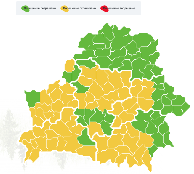 В Беларуси ограничения на посещение лесов введены в пяти областях – Гомельской, Брестской, Гродненской, Могилевской и Минской. Это следует из информации Минлесхоза. Запретов на посещение лесов в Беларуси пока нет. Ситуация в течение дня может меняться. На сайте Министерства лесного хозяйства размещена интерактивная карта запретов и ограничений на посещение лесов. С её помощью можно оперативно отследить, в каких регионах временно запрещено или ограничено посещение леса. Также узнать информацию можно по телефонам местных органов власти. Напомним, решение о введении и снятии запрета и ограничений на посещение лесов принимают местные органы власти по ходатайству лесохозяйственных учреждений или районных отделов по чрезвычайным ситуациям. Обычно они вводятся в случае высокого класса пожарной опасности и снимаются при стабилизации обстановки. Главная цель запретов и ограничений – обеспечить безопасность граждан, сохранность их имущества, а также лесного фонда.