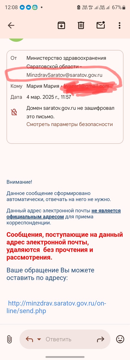 На скриншоте ответ "Сообщения, поступающие на данный адрес электронной почты, удаляются д прочтения и рассмотрения". Красным и жирным. Ну да, а зачем официальный е-мейл существует? Чтобы вконтактики вести и телеграмчики накручивать))