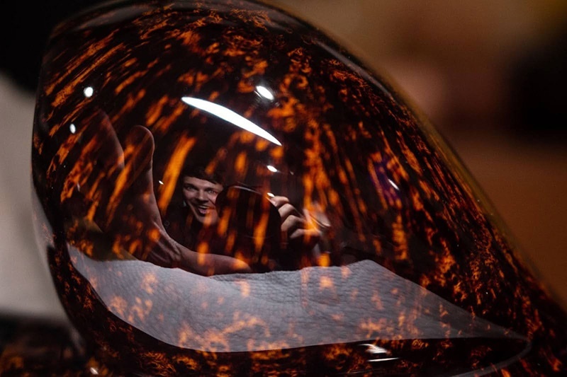 Но одна из замечательных особенностей бакелита — это то, что с ним довольно легко работать. Он, конечно, быстро затупляет напильники, но, кроме этого, он хорошо обрабатывается, и у него нет неприятного вкуса, как у эбонита при окислении. За ним не нужно постоянно ухаживать, как за эбонитом, и он очень долговечен». Трубки Yeti известны своим творческим использованием бакелита, а также высоким уровнем финишной отделки. «Последние четыре года я работал над собственными методами контрастного окрашивания и гладкой отделки, чтобы действительно вывести их на новый уровень. И это была борьба. Гладкая отделка может занимать три недели в моем процессе, просто потому что нужно много времени ждать. Я действительно стараюсь быть более дисциплинированным в выполнении этого и поддерживать постоянный поток трубок, входящих в процесс, чтобы всегда были те, которые завершаются. Это было моей основной задачей».