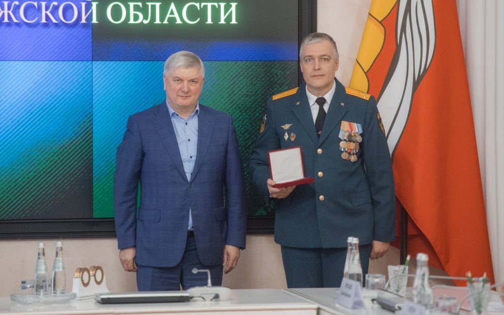 Губернатор Александр Гусев в рамках заседания оперативного штаба Воронежской области вручил награды двум офицерам, участвовавшим в тушении пожара на нефтебазе в пригороде Лисок. Об этом в пятницу, 21 марта, сообщили в пресс-центре правительства региона. Так, заместитель начальника ГУ МЧС России по Воронежской области Алексей Чикунов получил медаль «За труды во благо земли Воронежской», а руководитель специализированной пожарно-спасательной части Сергей Севостьянов – почетный знак «Благодарность от земли Воронежской». Напомним, что в ночь на 16 января после атаки дронов ВСУ на нефтебазе начался сильный пожар, из-за которого в районе ввели режим ЧС, временно закрыли дорогу к селу Копанище и отменили Крещенские купания. Спустя два дня спасателям удалось существенно сократить площадь возгорания. Однако в ночь на 20 января объект повергся повторной атаке БПЛА, из-за которой появились новые очаги. Ликвидировать открытое пламя удалось к вечеру 21 января, а сутки спустя спасатели доложили о то