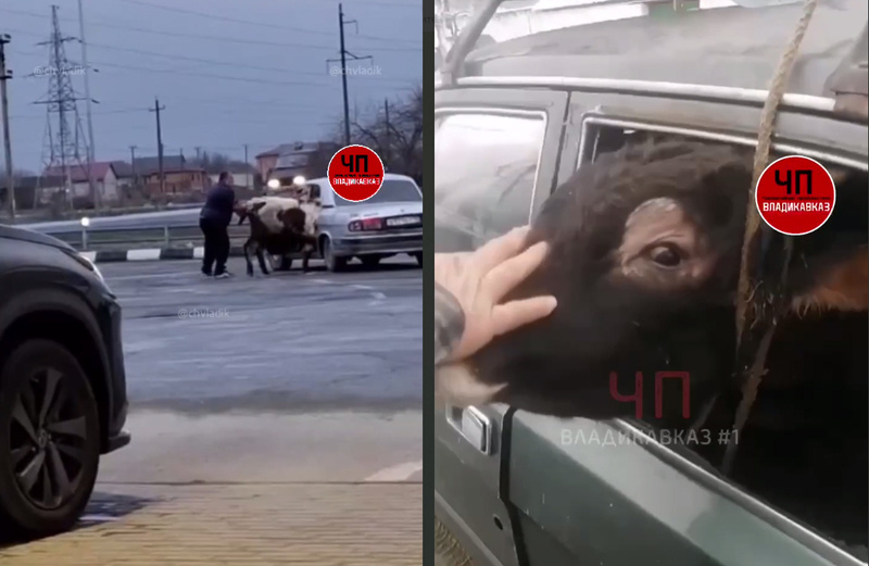 Житель Владикавказа Роин Сланов стал героем соцсетей после того, как попытался запихнуть корову на заднее сиденье своей «Волги». Вторую корову. Видео быстро разлетелось сначала по осетинским местным пабликам, а затем и по всей стране. На объездной дороге Владикавказа мужчина упорно пытался усадить упрямое животное в автомобиль. Несмотря на сопротивление коровы (или точнее - быка), он ловко орудовал ее хвостом и, приложив усилия, все-таки справился с задачей. После этого дверь машины была закрыта, а ролик моментально стал вирусным. Оказалось, что это не первый случай, когда Роин использует свою «Волгу» для перевозки животных. В его гараже есть еще один автомобиль, специально предназначенный для таких целей. Однако именно этот случай привлек всеобщее внимание благодаря необычности ситуации и настойчивости хозяина. Местные жители активно обсуждают видео. Одни хвалят мужчину за находчивость и целеустремленность, другие отмечают, что животному, вероятно, было некомфортно в столь тесном прос