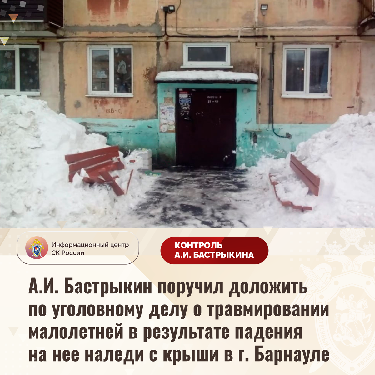 А.И. Бастрыкин поручил доложить по уголовному делу о травмировании малолетней в результате падения на нее наледи с крыши в г. Барнауле
