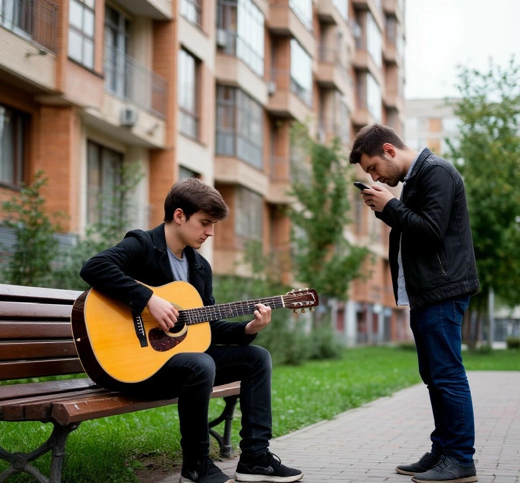Попрощались мы в пятницу, в субботу я, как порядочный муж, жене помогал. Вначале мы на рынок поехали, там закупили продуктов на неделю. Выгрузили сумки и пакеты из машины, подходим к своему дому, а там парень незнакомый на лавочке сидит. Рюкзак рядом с ним туристический, удочки и гитара в чехле. Ну, сидит и сидит мало ли, может, ждет кого-нибудь. Дома мы с женой сначала все сумки с покупками разобрали, потом чаю напились. Вышел я покурить на балкон, смотрю вниз, а парень тот всё сидит. Правда, гитару из чехла вынул и наигрывает что-то.