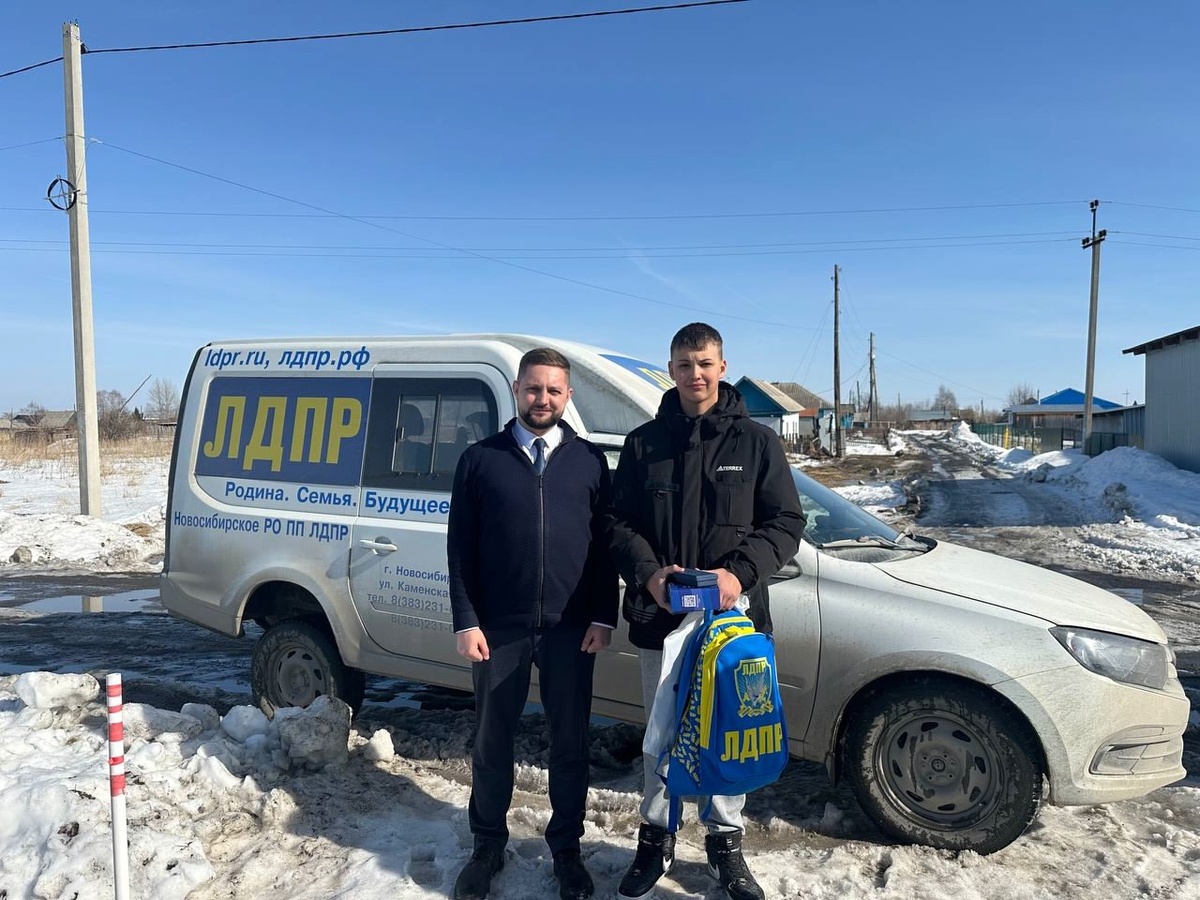 Лидер ЛДПР Новосибирской области лично вручил подарок каргатскому школьнику