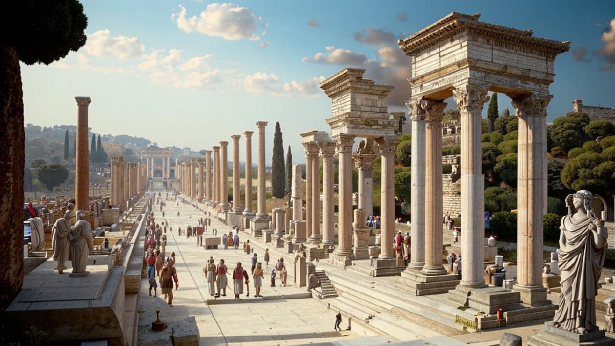 - Улица Куретов: Главная улица города, вымощенная мрамором и украшенная колоннадами.
