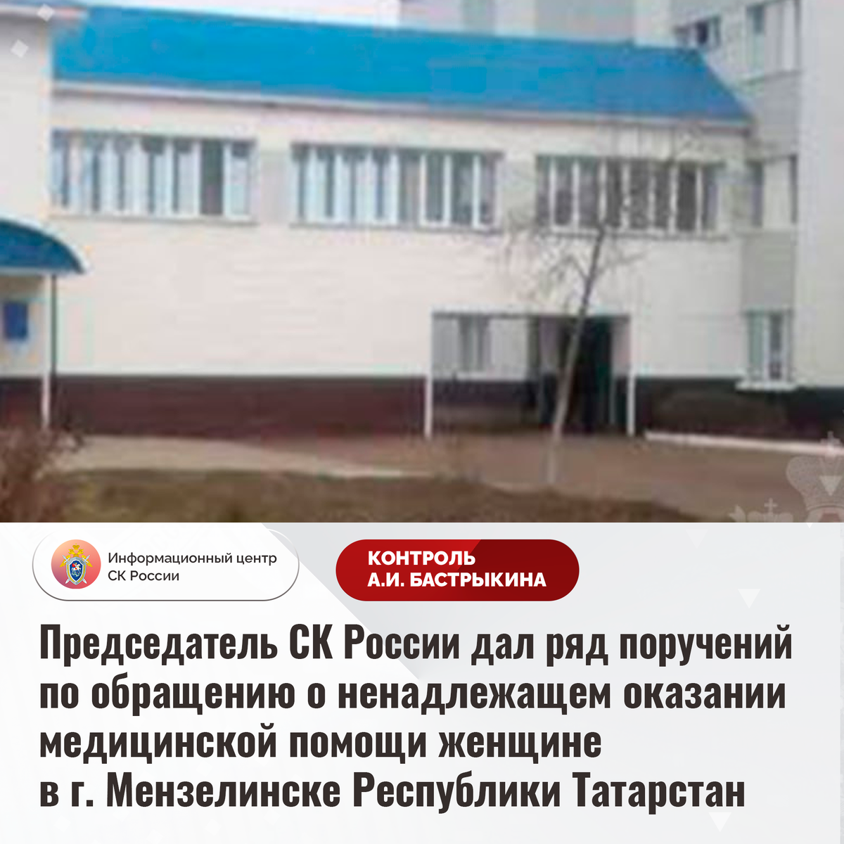 Председатель СК России дал ряд поручений по обращению о ненадлежащем оказании медицинской помощи женщине в г. Мензелинске