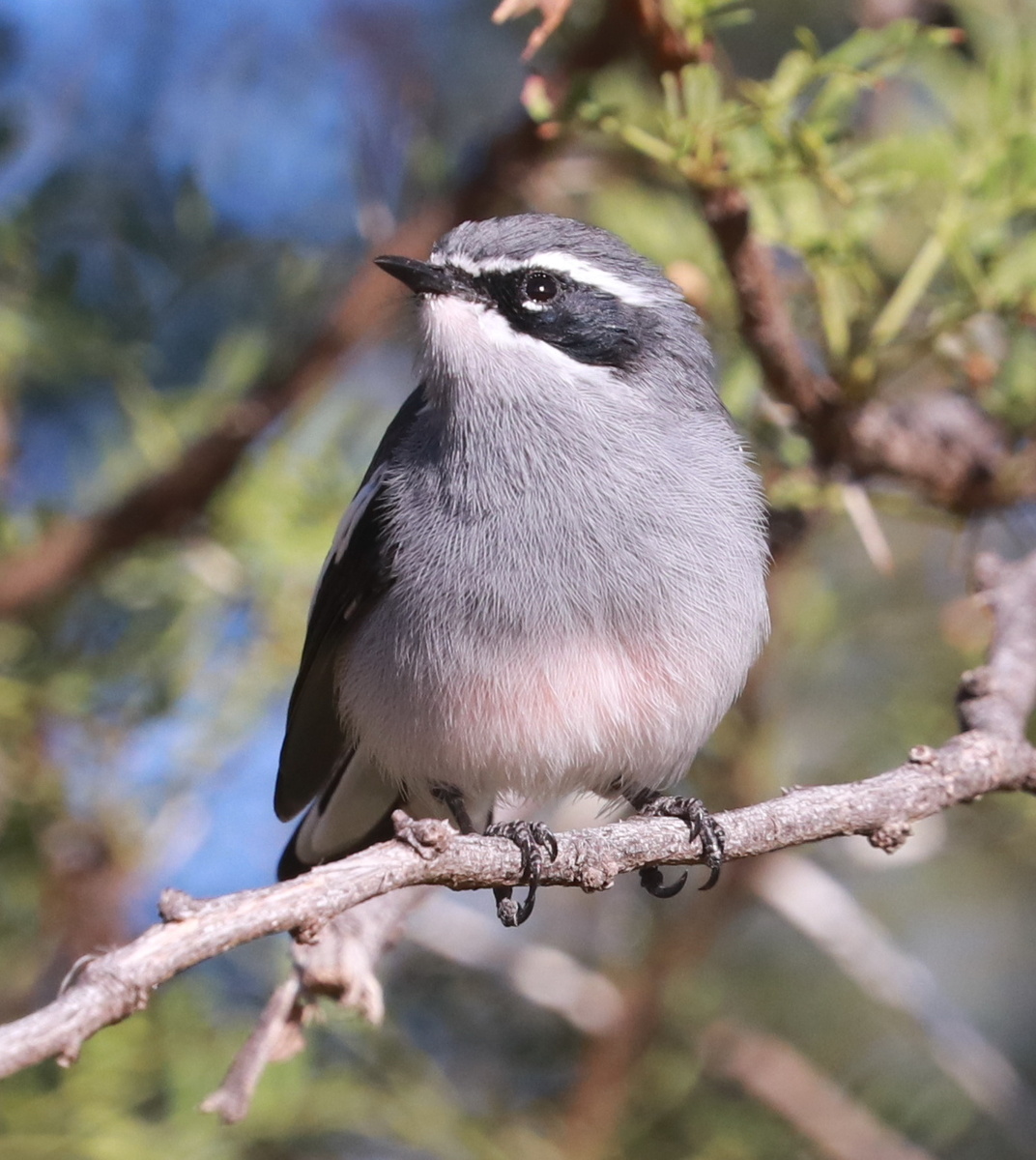 Охранный статус - LC - Вызывающие наименьшие опасения Отряд Воробьинообразные / Passeriformes Семейство Стеностировые / Stenostiridae Гнездовой ареал Африка, от южных границ до Замбии включительно Живёт среди кустарников в кару и финбоше. Питается насекомыми. Образует моногамные пары. Гнездо обустраивает среди ветвей деревьев или кустарников Милая пичуга, очень напоминающая наших синичек. такая же шустрая и любопытная. Встретили в зоне отдыха в парке Karoo