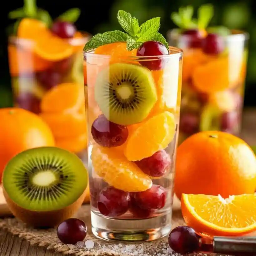 “Фрукты в стекле” – это оригинальный и эффектный десерт, который поразит ваших гостей своей красотой и необычным исполнением! Суть десерта заключается в том, что фрукты как бы “залиты” в прозрачное, съедобное стекло, создавая удивительный визуальный эффект. Начнем с подготовки фруктов. Киви (1 шт.) очистите от кожуры и нарежьте тонкими кружочками или полукружочками. Мандарины (2 шт.) очистите от кожуры и разделите на дольки. Виноград (200 г) промойте и разрежьте каждую виноградинку пополам (если виноград крупный). Разложите нарезанные фрукты на пергаментной бумаге в желаемом порядке и форме. В кастрюле с толстым дном смешайте сахар (200 г) и воду (70 г). Поставьте кастрюлю на средний огонь и доведите до кипения, постоянно помешивая, чтобы сахар полностью растворился. После закипания прекратите помешивать и продолжайте варить сироп до золотистого цвета. Важно следить за цветом сиропа, чтобы он не подгорел, иначе “стекло” получится горьким. Как только сироп приобретет золотистый цвет, сн