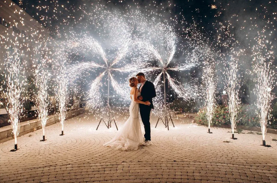 Трендовая идея на финал праздничной программы сейчас - это холодные фонтаны. Они создадут вау-эффект и сделают ваши свадебные снимки по-настоящему кинематографичными. Холодные фонтаны – это безопасные сценические спецэффекты, создающие феерию искр, но без жара и дыма. Они идеально подходят для открытых площадок, не оставляют гари и не представляют опасности для гостей и представляют выгодную альтернативу высотному салюту. Наши холодные фонтаны сертифицированы и безопасны для использования на свадьбах и других торжествах. Запуском занимаются профессионалы, которые следят за правильной установкой и синхронизацией работы фонтанов. Вам остается только выйти на сцену и быть великолепными ❤️ Как заказать? Если вы хоти