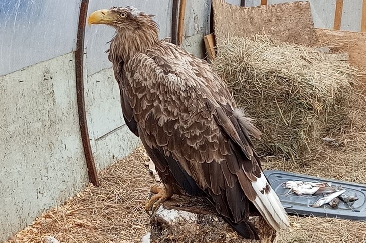 В волгоградском приюте «Птичий остров» борются за жизнь орлана, которого подстрелили в Астраханской области. Как рассказали ИА «Высота 102» в приюте, неравнодушные люди заметили раненую птицу в Камызякском районе. Орлан сидел около реки в труднодоступном месте. Когда о попавшей в беду птице узнала руководитель волгоградского приюта Алина Ерина, она бросила клич с просьбой помочь в доставке орлана в Волгоград, и такие добрые люди нашлись. Однако же, волонтерам пришлось нелегко – орлан пытался взлететь, но падал в воду. Чтобы достать его, одной из женщин пришлось зайти в реку. В Волгограде орлана осмотрели. Выяснилось, что у него ранение головы дробью. Птица потеряла один глаз. Теперь новому питомцу «Птичьего острова» предстоит операция для извлечения дроби из головы после того, как его состояние стабилизируется. Самостоятельно орлан принимать пищу пока не может. Однако накануне он смог взобраться на пенек. Волонтеры воспринимают это уже как маленькую победу. Фото: «Птичий остров» /t.me