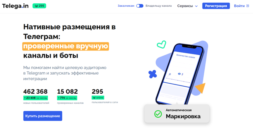 Телегратор — платформа с встроенной аналитикой каналов, что помогает рекламодателям выбирать лучшие площадки. Сервис бесплатный и предлагает дополнительные услуги, такие как написание рекламных постов и проверка каналов на релевантность.