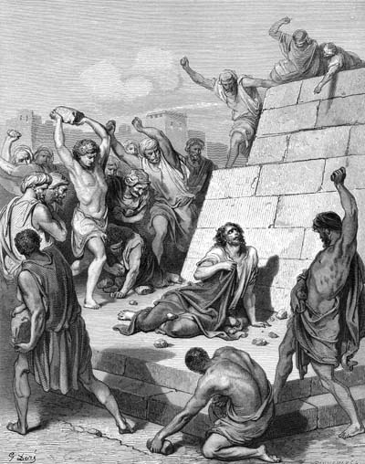 Это была страшная смерть - от побивания камнями. Если Стефана привели на место, специально отведенное для побивания камнями, то его сбросили со скалы, скатили вслед ему глыбы, чтобы переломать кости, а затем стали бросать огромные камни, пока дыхание не покинуло его избитое и изуродованное тело. Но возможно и другое: поскольку его отдали на растерзание толпы, люди, вероятно, просто окружили его и стали швырять в него камни, изрыгая проклятия в его адрес.