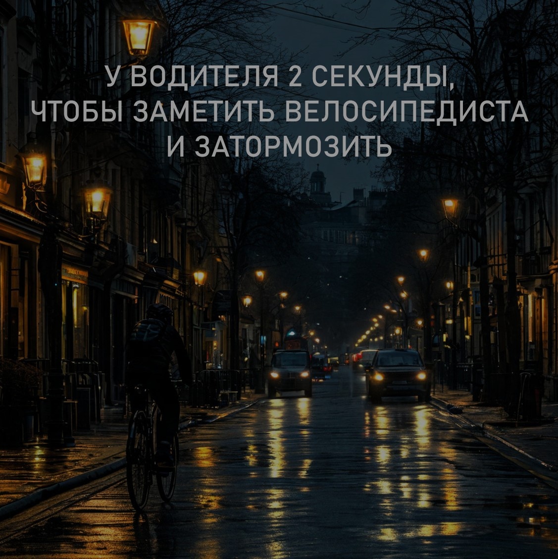 По статистике МВД России (а так же Канады, Голландии и Великобритании) до 70% велосипедистов, которые попадают в ДТП, становятся велосипедисты одетые в темную одежду. Почему это происходит? Основная проблема темной одежды заключается в том, что она сливается с окружающей средой, особенно в условиях недостаточной освещенности. Вечером, ночью или в пасмурную погоду водители автомобилей, мотоциклов и других транспортных средств просто физически не видят велосипедиста в темной одежде. Испытания показывают, что в темное время суток велосипедист в темной одежде становится заметен для водителя на расстоянии всего 15–20 метров. Этого недостаточно, чтобы вовремя среагировать и избежать аварии. В плохую погоду, например, во время дождя или тумана, видимость на дороге резко снижается. Темная одежда в таких условиях становится еще более опасной, так как капли воды и туман дополнительно ухудшают восприятие. Водители могут не заметить велосипедиста до последнего момента, что увеличивает вероятность