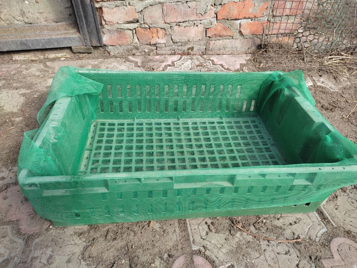 Добрый день! Вопрос интересный, так как актуальный при объёмах от 40кг и больше. Смотрел разные видео - кто как решает вопрос. Чаше всего стелят некую фанеру, куда сыплют гранулы тонким слоем. Вариант весьма хорош, но лишь при выполнении 2-ух условий: Но что делать, если объём может быть больше, а свободных площадей в нужном количестве не наблюдается? Я решил проблему таким способом: Обычный пластиковый ящик 600*400, коих б/у можно купить много и по весьма гуманной цене. Внутрь стелим обычную плотную москитную сетку. Не ту, что продаётся на маркетплейсах тонкая и эластичная для пластиковых окон, а крепкую. Чтобы максимально упростить конструкцию, по бокам скрепил степлером. Пара минут на ящик и готово. В наполненном виде выглядит вот так: В моём случае ящики высотой 15см. Помещается от 15+кг рыхлых гранул до почти 17кг плотных гранул. Но в среднем можно считать, что в ящик высотой 15см влезает 16кг гранул. Основная фишка таких ящиков - возможность поставить один на другой. Следующий ящ
