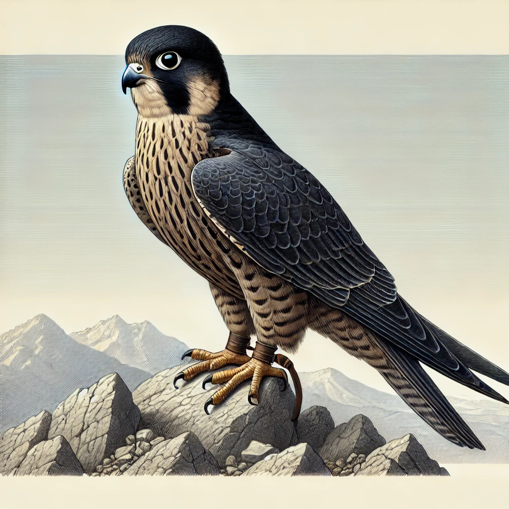 Сапсан (Falco peregrinus) — хищная птица семейства соколиных, известная своей невероятной скоростью в полете. Это один из самых быстрых животных на планете, способный достигать скорости до 320 км/ч в пикировании. Ниже представлен краткий научный материал о сапсане: Сапсан имеет стройное тело, длиной 34–58 см, размах крыльев составляет 74–120 см. Самки крупнее самцов. Оперение спины и крыльев серовато-синее, грудь белая с темными поперечными полосами. Характерная черта — «усы» (темные полосы) на голове. Сапсан имеет почти космополитическое распространение, встречается на всех континентах, кроме Антарктиды. Его ареал охватывает разнообразные среды — от гор и лесов до побережий и городов. Предпочитает открытые пространства и участки с высокими точками для охоты. Сапсан — специализированный хищник, охотящийся преимущественно на птиц. Его основная тактика охоты заключается в стремительном пикировании на добычу, которую он сбивает мощным ударом когтей. Гнездится на высоких утесах, скалах ил