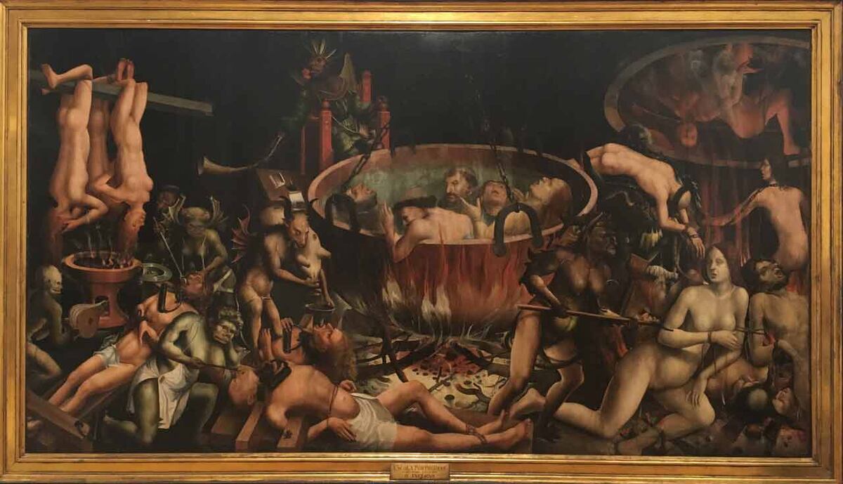 Этот «Ад» выделен как особенно характеризующий национальную мораль времен колониальной экспансии. Картина эпохи Возрождения, но наследует средневековый иконографический код, предлагая образ ада как место непрекращающихся пыток, мучений и вечного осуждения для тех, кто совершает смертные грехи, независимо от их положения в обществе, в частности монахов. Присутствие монахов среди грешников может быть связано с апологетической и морализирующей функцией произведения именно среди них.
