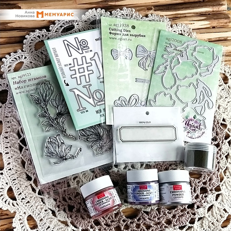 Всегда интересно что же покупают для себя скрап-мастера. Как хорошо, что дизайн-команда Мемуарис готова с радостью делиться своими покупками. Давайте заглянем в один из оранжевых пакетиков, в котором было много любопытных вещиц для скрапбукинга. Всем привет! С Вами Аня Новикова и мой обзор двух недавних покупок в магазине Мемуарис. Покупки были небольшие, но, тем не менее, очень значимые для меня, потому что я давно мечтала о них. Но давайте всё по порядку. Давно присматривалась к потрясающему наборам ножей «Мой номер первый» от Mimi Cut и «Подарочные бантики» от Agiart . Они такие классные! И посмотрите, какие чудесные бантики получились! Но это только начало. Сначала я купила Набор штампов «Магнолии» от Agiart , и очень хотелось приобрести к ним ещё и Набор контурных ножей «Магнолии» от Agiart, и огромное спасибо Марине за то, что она откликнулась на мою просьбу, и этот набор был закуплен для меня вместе с предзаказом ножей и штампов от Agiart. А сколько возможностей открывается при