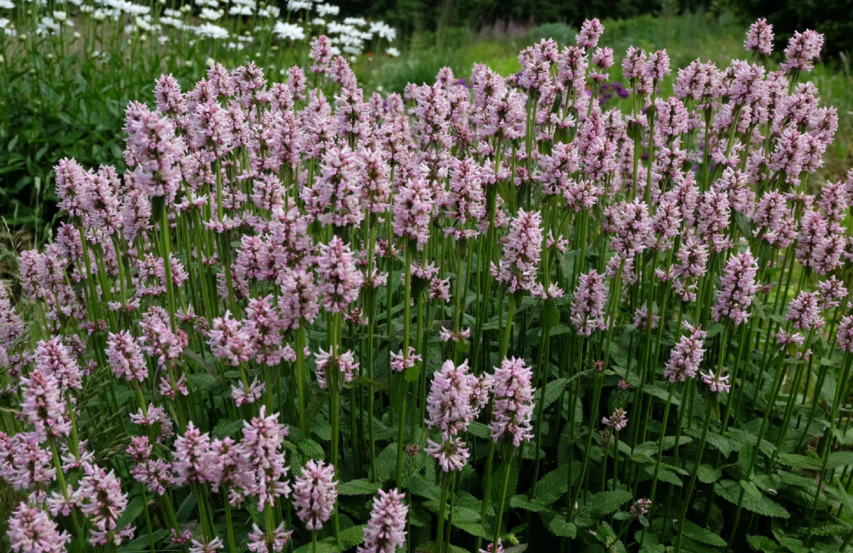 Чистец Монье очаровывает своими яркими, вертикальными цветочными шипами и пышной зеленой розеткой. Изюминка этого растения - красивые пурпурно-фиолетовые цветки, возвышающиеся над плотной розеткой ярко-зеленых листьев и привлекающие насекомых опылителей. Прекрасный медонос.