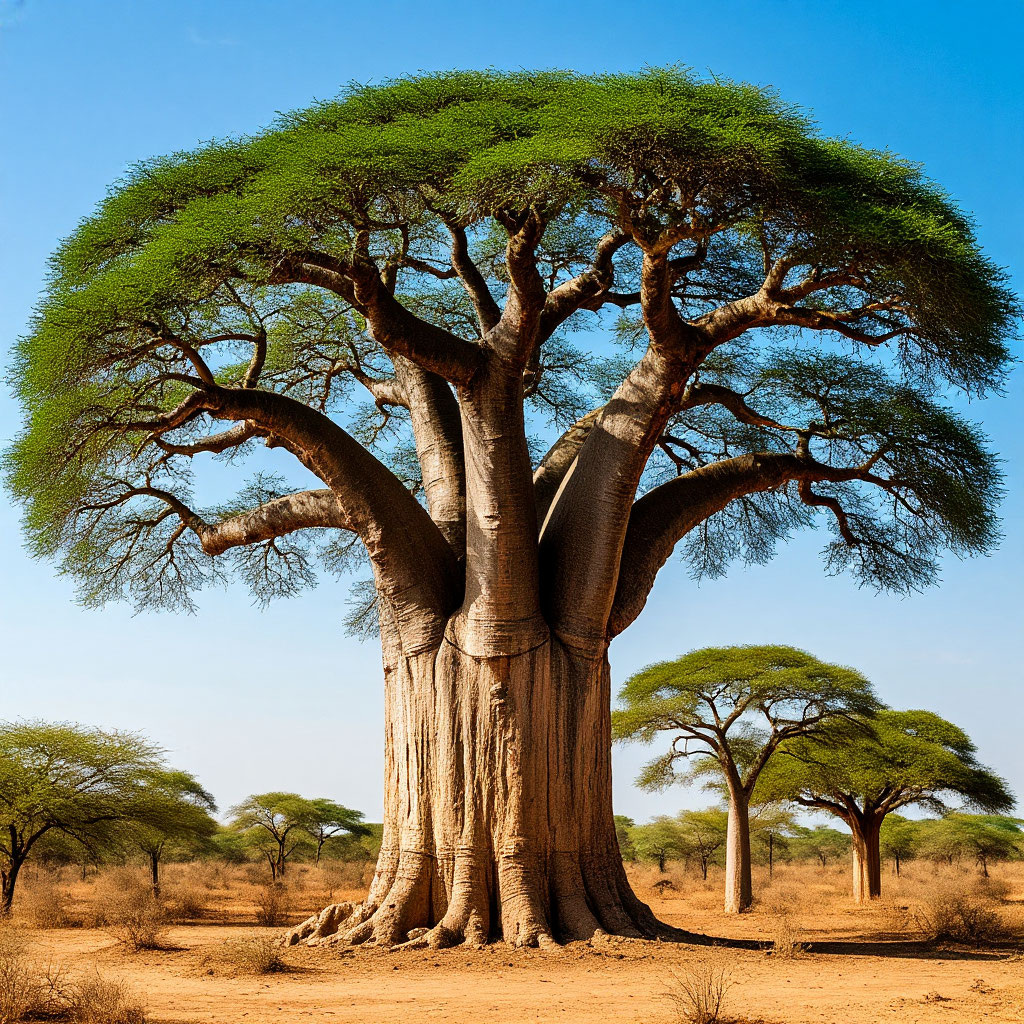 Самое быстрорастущее растение — баобаб. За сутки он может увеличиться на 0,75–0,9 метров в высоту. Долголетие. Точное определение возраста этих деревьев затруднено отсутствием годичных колец, характерных для большинства древесных пород. Некоторые из баобабов, по оценкам учёных, могут иметь возраст в 4500–5000 лет. Размеры. Хотя баобабы не являются рекордсменами среди деревьев по высоте (обычно достигают 20–25 метров, редкие «рекордсмены» вырастают до 30 метров), их стволы могут достигать колоссальных размеров по «ширине» — до 30 метров в обхвате.
