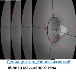 В общем, аналогии с батутом в ОТО избегать не следует. Батут – это аналогия искривления пространства СТАЦИОНАРНЫМ массивным телом. В Википедии эта аналогия четко описывает эффект девиации геодезических линий: Надо сказать, такие два тела на практике еще ни разу не сближались. Все как-то удаляются друг от друга. Про сближение это они просто для красоты, и придания большей наукообразности, написали. В каком случае они бы сближались? Если, не класть в центр массивный предмет, а наоборот подпереть батут снизу каким-нибудь дрыном, и устроить не ямку, а выпуклость. Но, еще раз повторяем, на практике, такое никогда не происходит. И как-то всегда шарик стремится закатится в «ямку». Ну, если у него скорость подходящая. Это мы к тому, что у пространства обязательно есть две батутные поверхности. Если абстрагироваться от наземного батута, то Другими словами, каждый попадающий в искривленное пространство объект будет пользоваться подходящим искривленным «батутом» так, чтобы оказаться на его «верхн