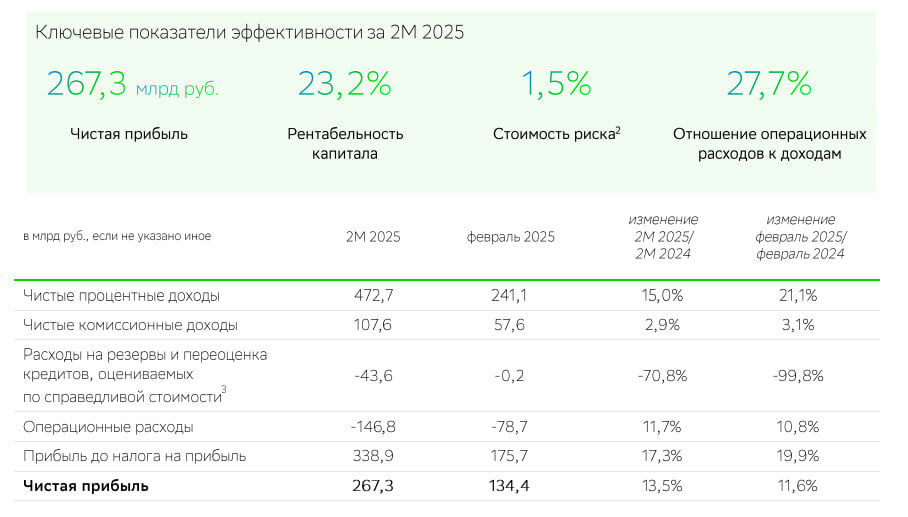 Сбербанк продолжает показывать сильный результат. Отчет за 2 месяца 2025 года