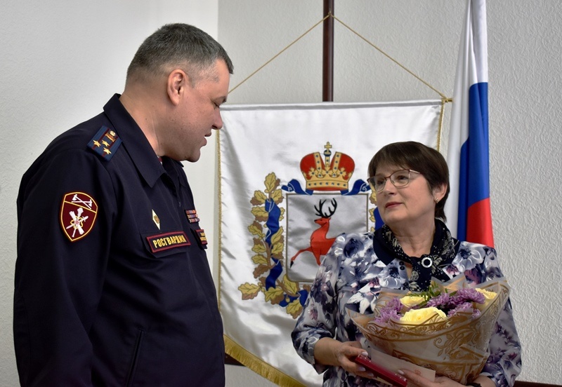 Представители Росгвардии и администрации города Бор вручили памятную медаль дочери ветерана войск правопорядка