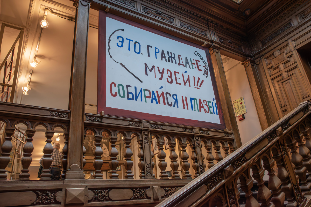 С такого плаката начинается выставка «НЭП. Образ города и человека» в особняке Румянцева. Чтобы попасть на эту выставку надо подняться из восточного аванзала на третий этаж по дубовой лестнице. В 1921 году, в связи с переходом к Новой экономической политике (НЭП), была отменена карточная система. В начале осмотра экспозиции выставки можно увидеть карточки, которые отменил НЭП. Судя по всему, нэпманы жили весело. 😊 А так жил трудовой народ: Во времена НЭПа развивалось мелкое кустарное производство и индивидуальное предпринимательство – от пошива одежды до частной фотомастерской. Агитационные плакаты тех времен: Крестины стремились заменить «октябринами»: Большая часть экспозиции посвящена культурной жизни города тех времен. Экспозиция выставки, посвященной НЭПу, плавно перетекает в экспозицию выставки «От будней к празднику», которая рассказывает о жизни города в 1930-х годах.