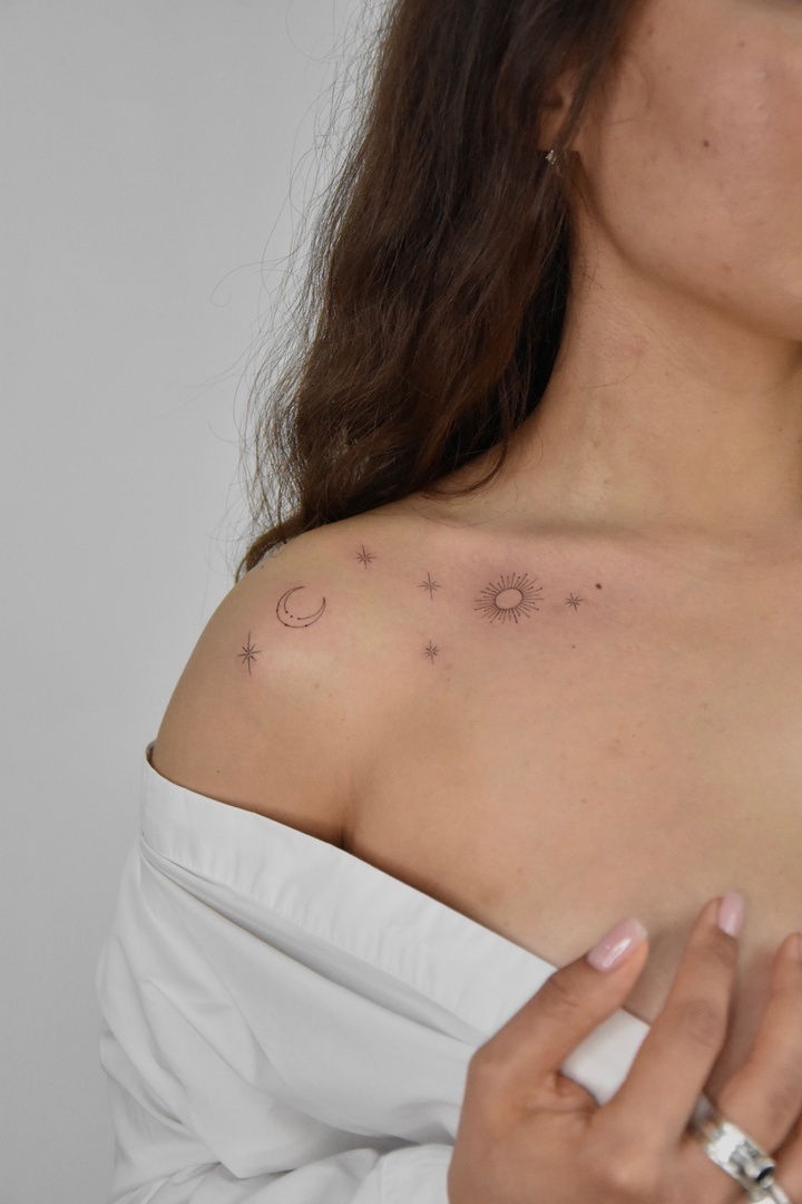 Элегантные минималистичные работы, выполненные тонкими линиями, занимают первое место по популярности. Такие татуировки выглядят изысканно и уместно в любой ситуации. Они идеально подходят для первой татуировки благодаря своей универсальности и деликатности.