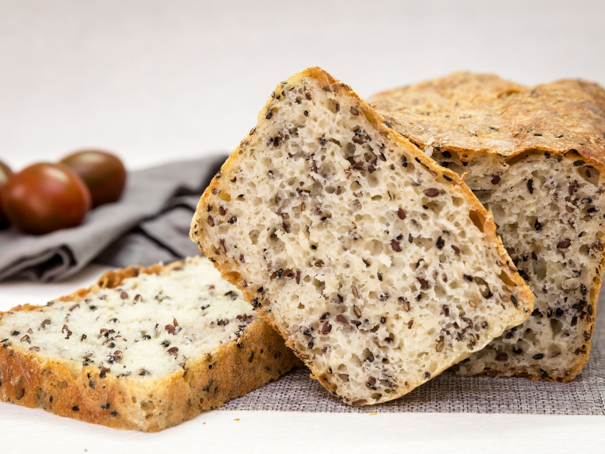 Иногда кажется, что день прошел, а ты в нем так и не успела побыть. Бесконечные дела, заботы, суета — даже на себя не хватает времени, не то что на что-то «лишнее» вроде домашнего хлеба. Но разве теплый аромат свежей выпечки — это лишнее? Разве ломтик хрустящего хлеба, который ты сделала своими руками, не стоит того, чтобы остановиться хотя бы на пару минут? Этот рецепт — для тех, у кого времени совсем нет. Для тех, кто вечером падает от усталости, а утром хочет почувствовать, что этот новый день — начинается с чего-то хорошего. Вечером, когда мысли путаются от усталости, просто достаем миску, всыпаем 450 мл пшеничной муки, добавляем 1 чайную ложку сухих дрожжей, 2 чайные ложки сахара, 1 чайную ложку соли, 3 столовые ложки семян льна и 3 столовые ложки кунжута. Перемешиваем ложкой – без усилий, без замеса, просто чтобы всё соединилось. Затем вливаем 300-320 мл теплой воды и снова мешаем. Тесто получается липким, вязким, будто недоделанным, но именно так и нужно. Без паники, без муки