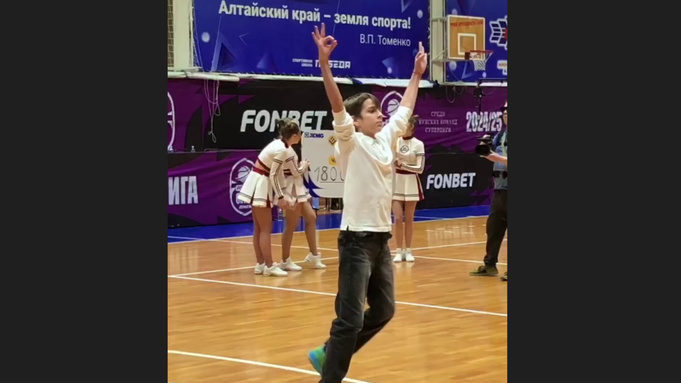 Школьник выиграл 180 тысяч рублей, забросив мяч с середины паркета на игре БК "Барнаул"
