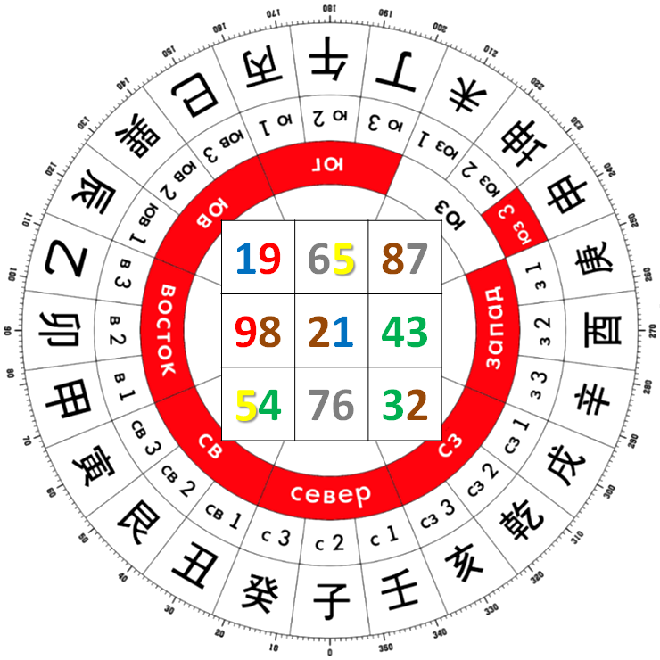 ● Летящая Звезда 2 – в Центре. Аффликции месяца: ● «Три Несчастья» занимают все Западные секторы: