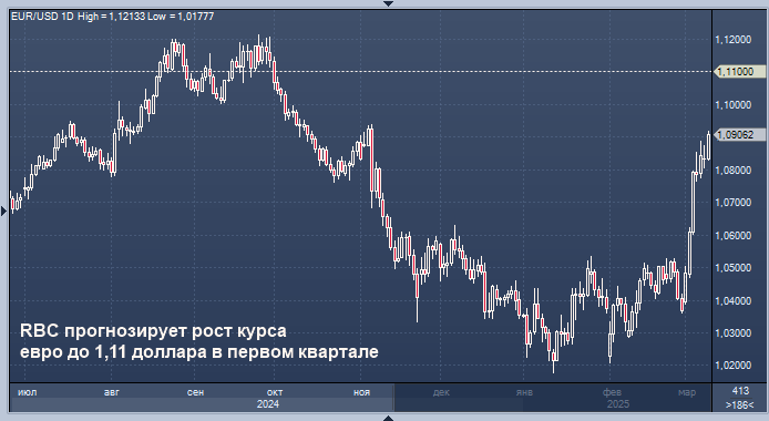 RBC прогнозирует рост курса евро до 1,11 доллара в первом квартале