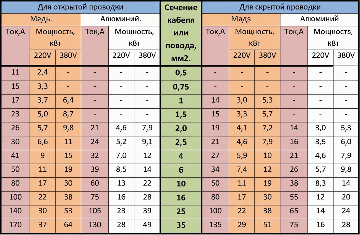 Как правильно выбрать сечение кабеля: таблица и рекомендации