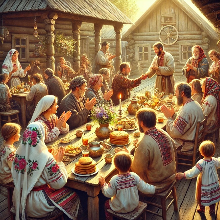 - Соберите семью на «заговённый обед/ужин»: пусть это будет уютное застолье, с символическими блюдами (например, блинами или пирогами).