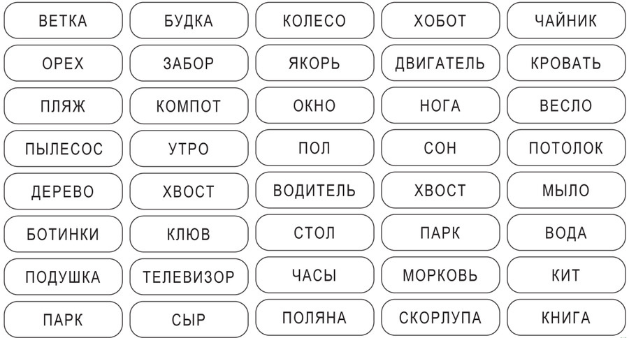 - Признание (опция) – если пациент не может вспомнить слова, ему показывают список из 10–15 слов, где есть как правильные, так и ложные варианты, и просят выбрать те, которые были в изначальном списке.