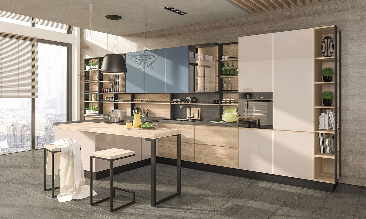Часто кухни до потолка со шкафами в два ряда стоят дороже на 25-30%, чтобы сэкономить, выбирайте единые высокие шкафы. А небольшое пространство до потолка можете закрыть добором.