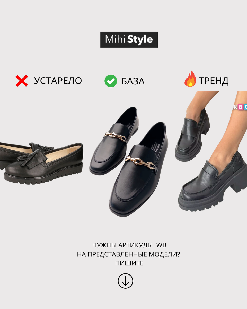 Дорогие подписчицы, давайте поговорим о том, что действительно важно — о насмотренности! В мире, где тренды устаревают быстрее, чем мы успеваем их осознать, умение видеть, анализировать и вдохновляться становится настоящим супернавыком. Готовы прокачивать его вместе? 💪✨ ❌УСТАРЕЛО: Лоферы с небольшим подъемом, глубоким вырезом и декором в виде кисточек ✅БАЗА: Базовая модель выполнена из гладкой кожи имеет овальный мысок, металлическая перемычка обязательна в базовой модели 🔥ТРЕНД: К трендовой модели в этом сезоне можно отнести лоферы с небольшим каблуком, допускаются модели на гладкой или тракторной подошве ❌УСТАРЕЛО: Кеды из ткани или кожи на слишком широкой объемной подошве , тенденция этого сезона простота и лаконичность ✅БАЗА: Базовой моделью по прежнему остаются кеды из гладкой матовой кожи , они идеально впишутся в любой гардероб 🔥ТРЕНД: Самые трендовые модели сезона -это кеды выполненные из замши в нейтральных оттенках ❌УСТАРЕЛО: Балетки очень актуальны, но не стоит доста