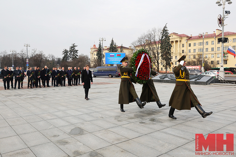 Заместитель председателя Мингорисполкома Андрей Стригельский и губернатор Приморского края Российской Федерации Олег Кожемяко возложили цветы к Вечному огню и монументу Победы 11 марта. Мероприятие состоялось в ходе рабочего визита О. Кожемяко в белорусскую столицу, передает корреспондент агентства «Минск-Новости». Как отметил А. Стригельский, сотрудничество Минска с российскими регионами углубляется, причем перспективные проекты ожидаются в разных сферах — от экономики до культуры. — Я думаю, этот визит будет успешным и выгодным для обеих сторон, — сообщил заместитель председателя Мингорисполкома. — Уже достигнуты договоренности о поставке в Приморский край автобусной техники производства «МАЗ-Купава», а также пассажирской техники предприятия «Белкоммунмаш». Будут актуализированы планы по взаимодействию в областях культуры, образования и здравоохранения, гуманитарного сотрудничества. В российском регионе высоко ценят белорусскую технику и продукты питания. В свою очередь Приморский кр