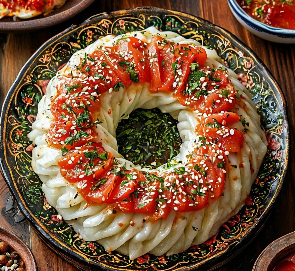 Это традиционное узбекское блюдо, напоминающее манты, но с более тонким тестом и нежной начинкой. Оно готовится на пару и подается с соусом или сметаной. Ингредиенты: Для теста: 500 г муки 1 яйцо 1 чайная ложка соли 200 мл воды (примерно) Для начинки: 500 г картофеля 300 г мяса (баранина, говядина или курица) 2 луковицы Соль, перец по вкусу 1 чайная ложка зиры (по желанию) Растительное масло Для подачи: Сметана Зелень (укроп, петрушка) Приготовление теста: В миску насыпьте муку, добавьте яйцо, соль и постепенно вливайте воду, замешивая тесто. Замесите плотное, эластичное тесто. Оно должно быть мягким, но не липнуть к рукам. Накройте тесто полотенцем и оставьте отдыхать на 20–30 минут. Приготовление начинки: Картофель очистите и нарежьте мелкими кубиками. Мясо нарежьте небольшими кусочками. Лук нарежьте мелкими кубиками. Смешайте картофель, мясо и лук в миске. Добавьте соль, перец, зиру и немного растительного масла. Хорошо перемешайте. Формирование ханума: Раската