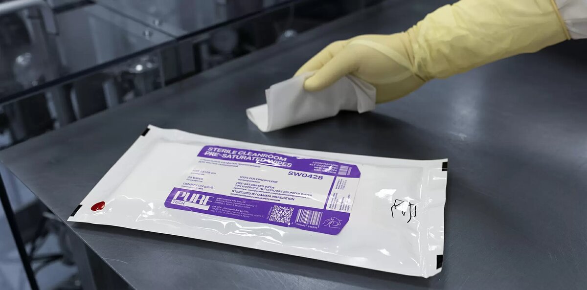 Уборка чистых помещений — это критически важный процесс, который требует строгого соблюдения стандартов, регулирующих требования к чистоте и использования специализированных материалов. Одним из ключевых расходных материалов для уборки чистых зон являются стерильные салфетки, соответствующие международным стандартам ISO 14644 или GMP (Good Manufacturing Practice). Основные требования к салфеткам для чистых помещений: Бренд Puretech® разработал для Вас универсальное готовое решение – влажные салфетки, пропитанные дезинфицирующим раствором. Материал: 100% полиэстер Плотность: 140 г/м² Тип сложения: Z Стерилизация: Стерилизованы гамма-облучением, уровень стерильности 10⁻⁶ Дезинфицирующий состав: 70% изопропиловый спирт/30% деионизированная вода Размер листа: 23×28 см Цвет: белый Обработка края: лазерная резка Количество в упаковке: 25 салфеток Срок годности: 2 года Материал: 100% полипропилен Плотность: 34 г/м² Тип сложения: C Стерилизация: Стерилизованы гамма-облучением, уровень стерил
