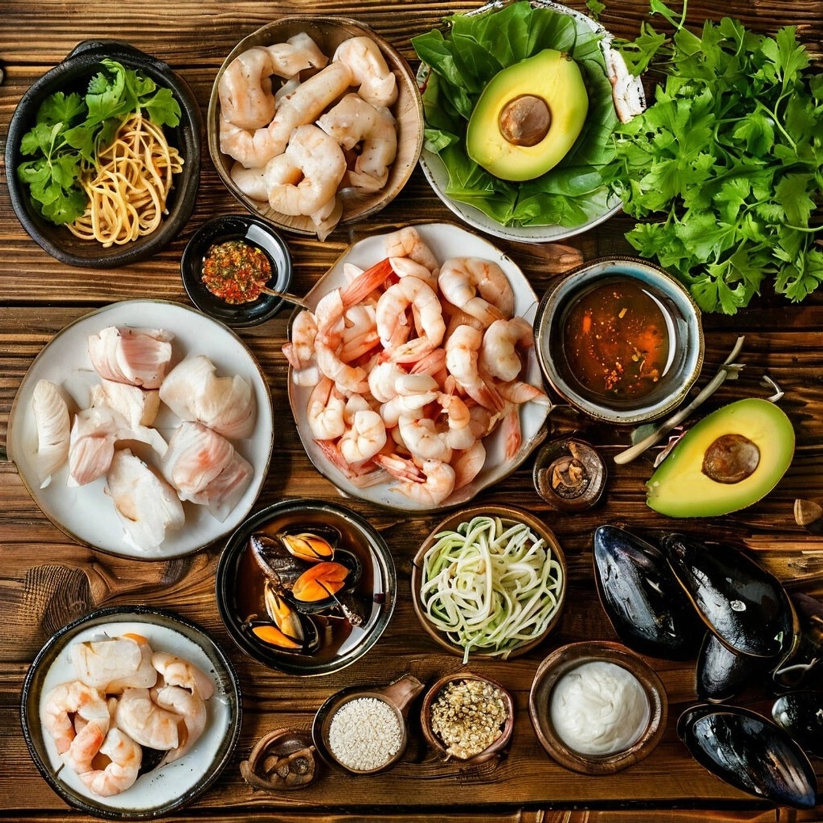 Морепродукты – это источник белка, омега-3 жирных кислот, витаминов и минералов. Они полезны для сердца, мозга, кожи и волос. Например, креветки богаты йодом, который необходим для нормальной работы щитовидной железы, а кальмары содержат много витамина В12 и железа.